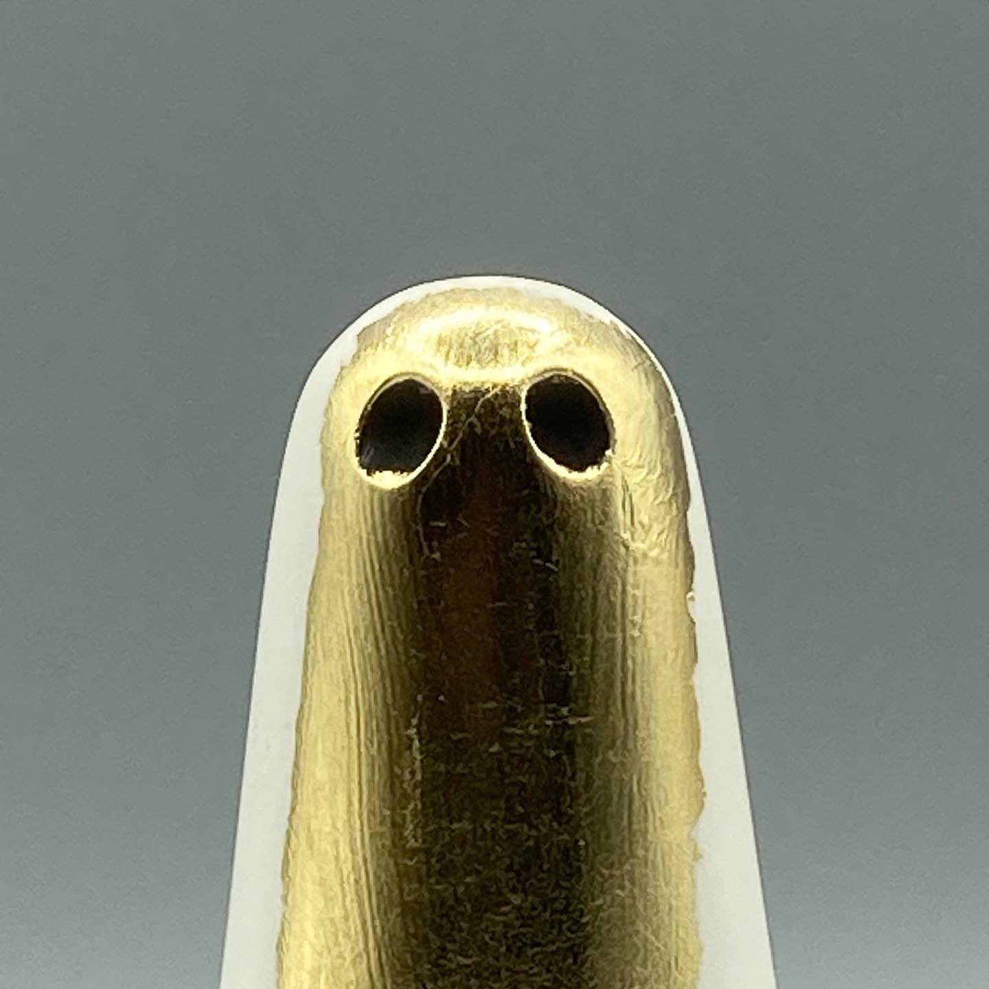 The December Phantom - The body of the Phantom is snow white, the eyes black as lumps of coal but the veil is a radiant 22 karat gold leaf, hand gilded by Merchants in our workshop. The gold leafed veil is delicate and prone to scratching if roughly handled.